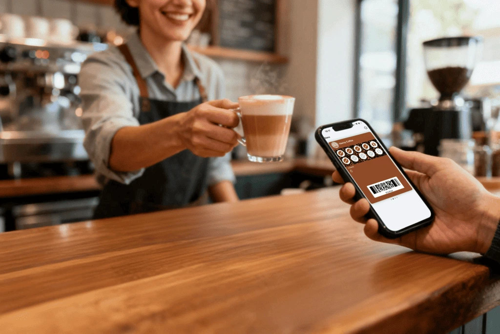 Spend US$10 = 1 stamp. Collect 5 stamps = free coffee.For example